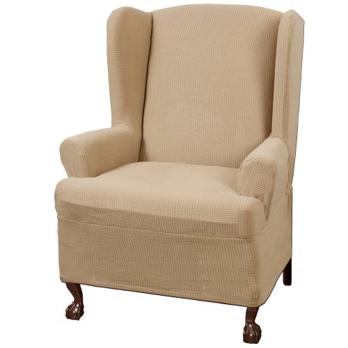 "Maytex Stretch Reeves 1-Piece Wing Chair Slipcover, Natural" Overview